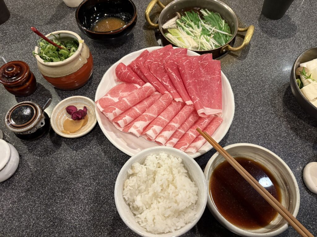その後、今宮戎神社、大阪天満宮と順調に巡り、昨日お世話になった友人と商店街で合流。ご褒美の「しゃぶしゃぶ」に舌鼓を打ちました。